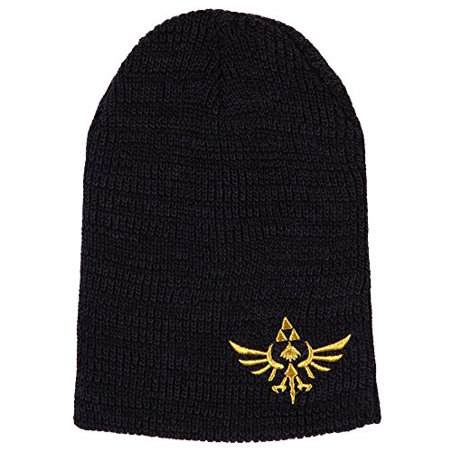 -. Binding : Apparel -. Brand : Nintendo -. ClothingSize : One Size Fits Most -. Color : Black -. Department : mens -. EAN : 0887439889167 -. Feature : Officially licensed / Soft, comfy knit / One Size Fits Most / Embroidered design -. ProductGroup : Apparel -. ProductTypeName : HAT -. Size : One Size Fits Most -. Title : Legend of Zelda Triforce Logo Slouch Knit Beanie -. UPC : 887439889167