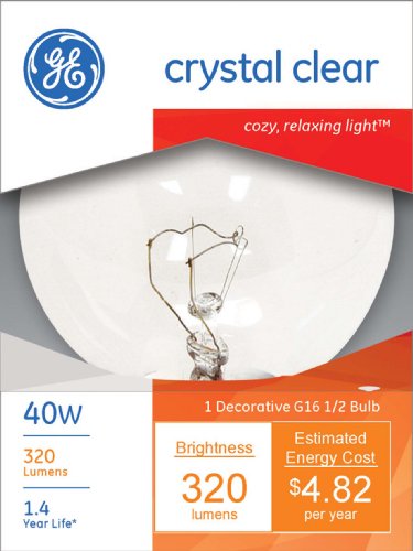 GE Lighting 14958 40-Watt 370-Lumen Decorative G16.5 Incandescent Light Bulb, Crystal Clear