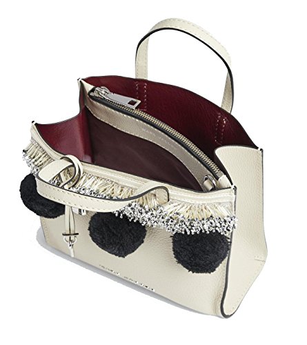 Product Description Bead and pompom embellishments make a splash on a scaled-down tote featuring dual interior compartments separated by an angled zip-pocket divider that makes the most of the space inside. 0