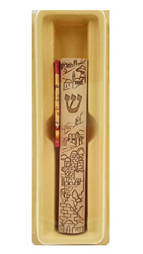 Jerusalem MEZUZAH With Scroll For Door Art Judaica Gift Made in Israel Mezuzah Case 5"