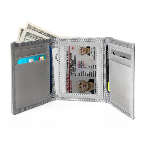 -. Feature : Protect your P.R.Ivacy! Secure wallet (ISO 15693 certified) RFID blocking protection from credit card and ID theft / Not another leather wallet, the original stainless steel wallet; patented, flexible stainless steel fabric and silver ballistic nylon / 6 credit card pockets, 2 stash pockets (Fits credit cards), 1 bill compartment, ID window; Dimensions: 3.5" x 4" x .25" / Thin, slim, lighter then traditional leather and durable; Signature 3D box texture; High performance textiles featuring reinforced folds and interior / Modern update to the classic wallet; smooth to the touch; travel and daily use essential