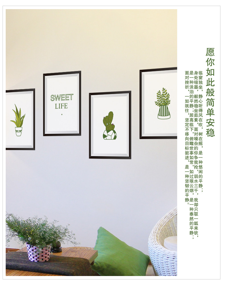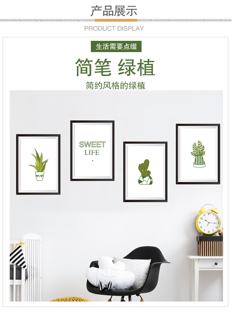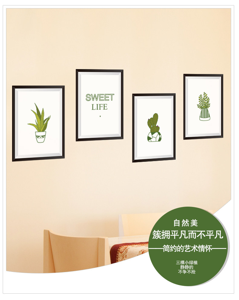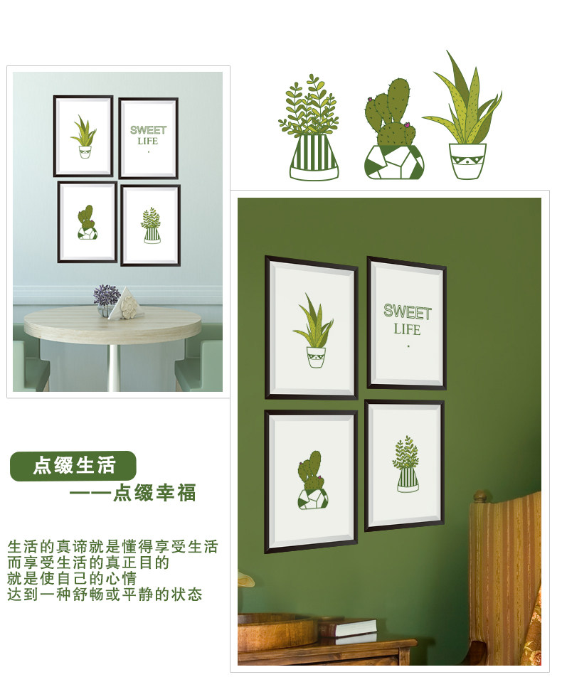 墙纸自粘卧室壁纸背景墙大学生宿舍创意画框墙贴简约贴画简笔绿植