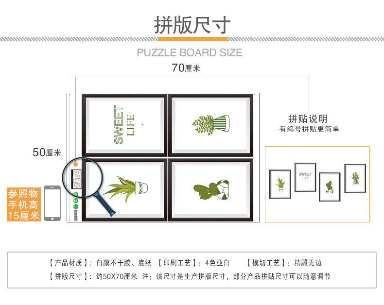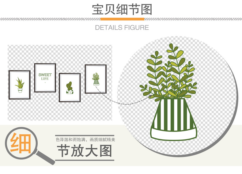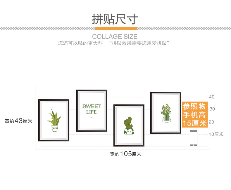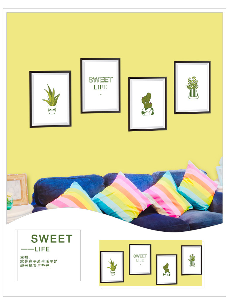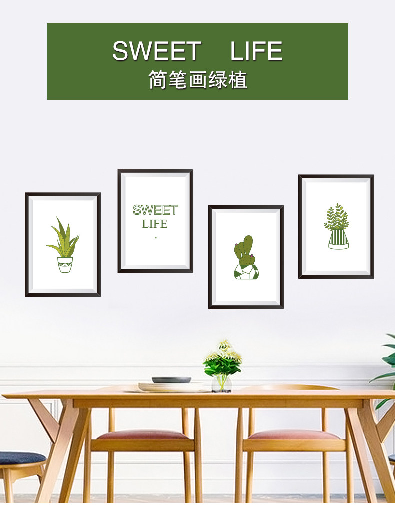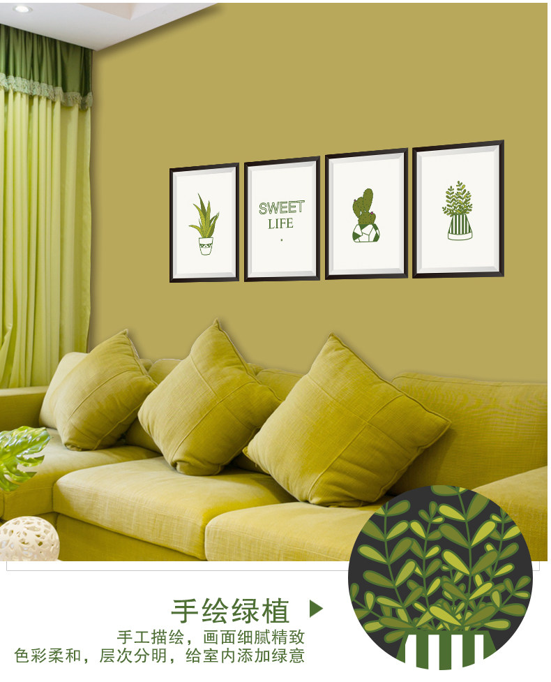 墙纸自粘卧室壁纸背景墙大学生宿舍创意画框墙贴简约贴画简笔绿植