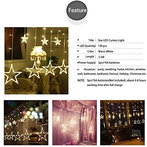 | (DINOWIN)/Boating Water Sports/Diving/DIRECT FROM USA/Star Window Lights, DINOWIN 12 Stars 138 LED Star Window Curtain Light with 8 Modes Lighting Ba... |