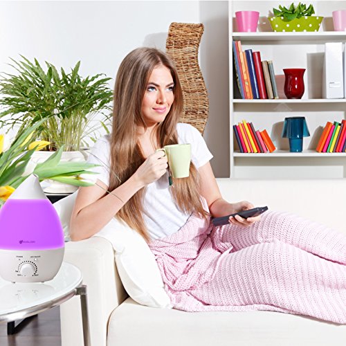 The Avalon Ultrasonic Humidifier with Filter, Aroma Diffuser, and 7 Color LED Nightlight is a stylish humidifier with 7 LED color light options to light up the tank. The humidifier is equipped with a ceramic filter to eliminate bacteria and mineral build-up in the machine. The back of the humidifier also has a built-in essential oil box to make the unit an aroma diffuser as well. The humidifier tank holds up to 2.8 liters of water and will last 10 hours. The unit has an easily adjustable knob to adjust the mist flow. This humidifier is ETL listed and meets all safety regulations.Feature
