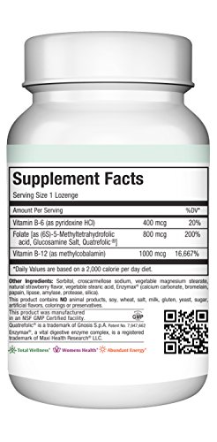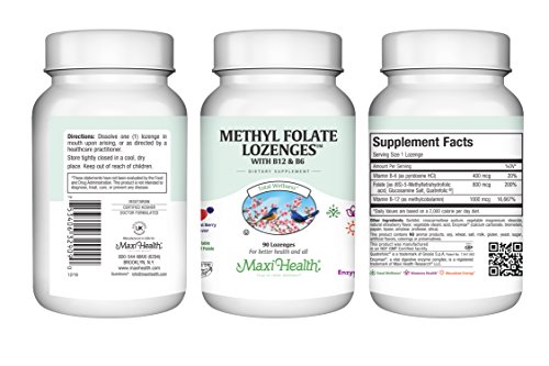 -. Feature : All Bioavailability In One Easy-To-Deliver-Dosage - Most methylfolate lozenges aren't powerful enough to work or don't contain enough forms of B Vitamins to support better health and greater vitality. And ones that do aren't ever all-natural or kosher. Maxi Health puts an end to that. The greatest bioavailability of B9 vitamins along with B6 and B12 delivered in one kosher-certified lozenge maintains vitality, supports brain health, and supports neurotransmitter synthesis. / Regain Your Vibrance And Energy - Feeling slish lately? Do you want that vivacious pep in your step that you used to have back? Methylfolate is crucial for energy, the formation of red blood cells, and nervous system support. Each lozenge is power packed with 1000 mcg of B-12 for increased methylation support for energy to ensure your body has enough fuel to keep you motoring all day. / 100% All-Natural And Delicious - Tired of lozenges that taste rancid? So were we. Our methylfolate sublingual lozenges contain no synthetic flavorings, are MADE IN THE USA to strict standards, and taste delicious. Our berry flavored lozenges are one of our most popular products. The taste and easy deliverability are great for all ages but perfect for picky kids and prenatal mothers. You won't have to fight anyone to take them again! / Maxi Health Guaranteed - Maxi Health is the leader in kosher supplements with over 250 products. We are an NSF and GMP-certified facility that has been providing families the high-quality health products they need for over 40 years. We are dedicated to only using natural, kosher ingredients and producing our supplements in the USA.
