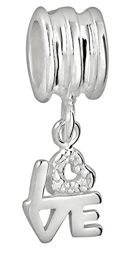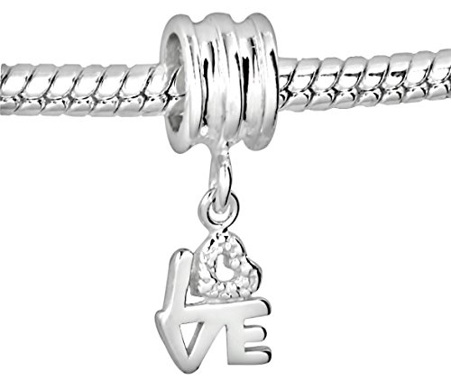 - Title : .925 Solid Sterling Silver Dangle "Love" Heart Bead Charm for Charm Bracelets & Necklaces, Compatible with European Style Snake Chain Bracelets
