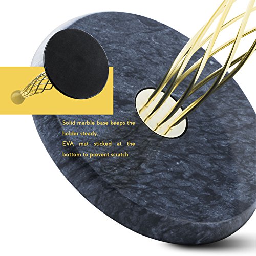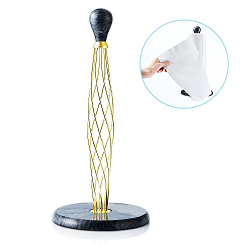 1. A must have basic and functional paper towel stand that will enhance any kitchen decor due to its stylish twisted wire design and premium marble material, looks great either filled with paper roll or empty. 2. To enable one paper towel sheet and one hand tear at a time, instead of using tension arm which is easy to break off or get loose like many other paper towel holders, we designed the tension twisted wire spine which is durable and adjustable to accommodate any size paper towel roll by generating just enough resistance for spinning when tearing off the towel, plus the marble material base ensures the holder sturdy in place. No flying or non-stop unwinding papers anymore, get one sheet or the exact amount you need every time, clean and sharp.