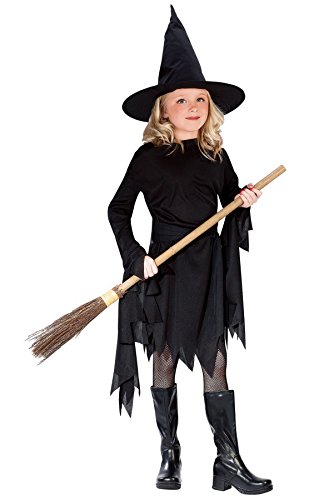 Studio : Fun World Publisher : Fun World Binding : Toy Product Description Classic Witch Child Costume Cast your magic spell and fly on your broom stick with this sorceress costume! Includes: Dress, belt, and witch hat. Available Size: Small 4-6 Medium 8-10 Large 12-14 0