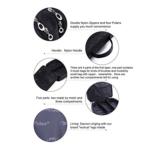 - PREMIUM MATERIAL: This makeup bag is made of high quality nylon, smooth zippers, sponge and Velcro. (Note: Cosmetic Accessories Not included).