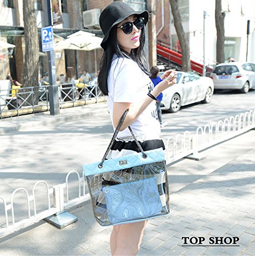 -. Title : FTSUCQ Womens Casual Chain Clear Tote Swimming Transparent Beach Handbag Trapeze Bags