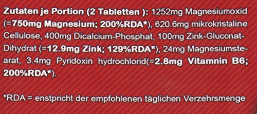 -. Feature : 100%RDA Magnesium und Vit. B6 je Tabletten / 65%RDA Zink je Tablette / in der praktischen Schraubdose