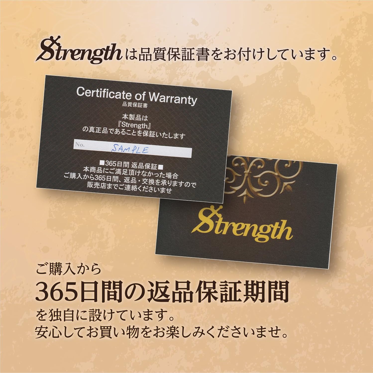 Strengthアクセサリーは全品、365日間の保証が受けられます。
