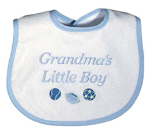 -. Feature : Embroidered "Grandma's Little Boy" / Trimmed with blue binding / For boys only / Measures 9" across by 11" from top to bottom / Machine washable/tumble dry