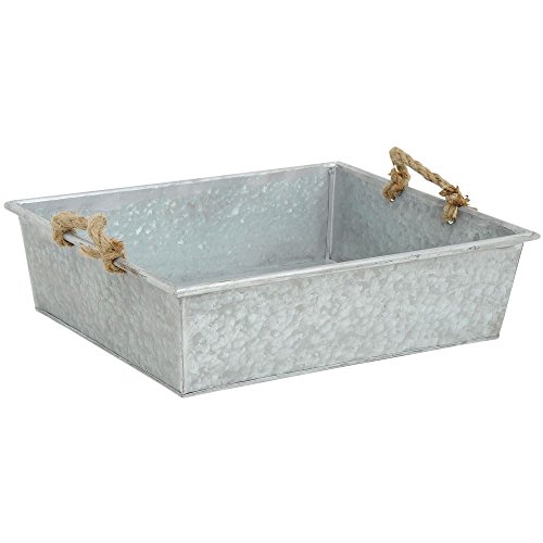 -. Title : Rectangular Galvanized Tin Tray with Rope Handle - 23"L x 19 1/4"W x 9 1/2"H