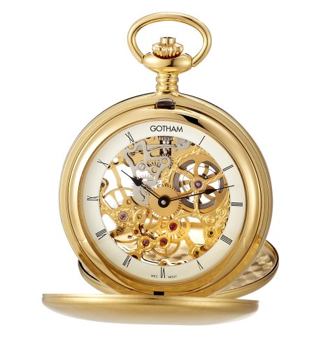 -. Title : Gotham Men's Gold-Tone Double Cover Exhibition Mechanical Pocket Watch # GWC18801G