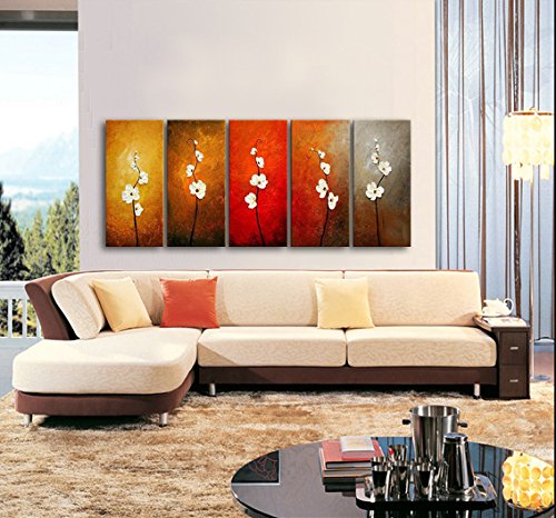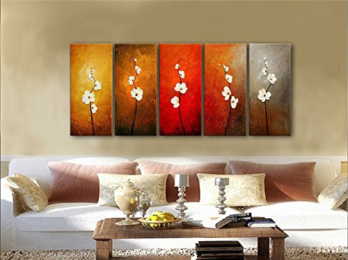 - Feature : High quality 100% Hand-painted oil paintings on canvas painted by our professional artist with years of oil painting experience. A great gift idea for your relatives and friends. / Stretched and Framed canvas oil paintings set ready to hang for home decorations wall decor, each panel has a black hook already mounted on the wooden bar for easy hanging out of box. / Oilpainting size: 12x24inchx5pcs(30x60cmx5pcs) / As each painting is 100% hand-painted, actual paintings may be slightly different from the product image. Due to different brand of monitors, actual wall art colors may be slightly different from the product image. / Authentic Wieco Art canvas home art are packed in carton box with Wieco Art logo printed on each box. Hot Selling oil or Acrylic paintings on canvas, A perfect wall decorations oil paintings for living room, bedroom, kitchen, office, Hotel, dining room, bathroom, bar etc.. Gift card is also available upon request.