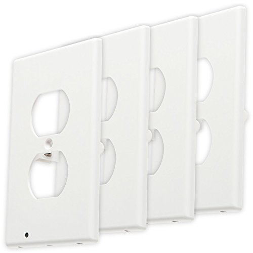 FanFav Elements Premium LED Night Light Outlet Covers - No Batteries or Wires - (Duplex 4 Pack) - White Plastic Wall Plate Guidelight