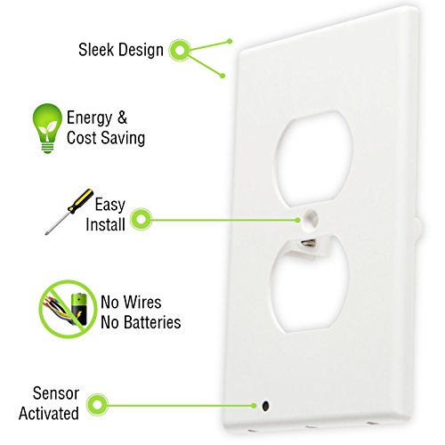 ELEGANT & EFFICIENT - This energy-saving plastic outlet cover comes with a built-in, light-sensitive, sensor that triggers the LED lights when it’s dark to provide just enough light to get around safely at night