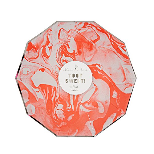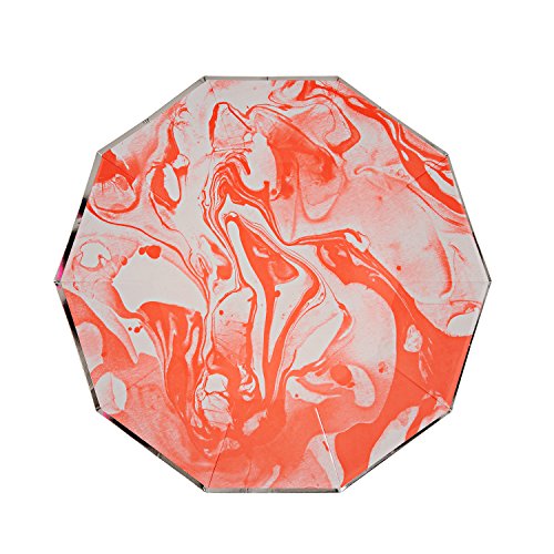 - Meri Meri Small Marble Party Plates, Set of 8 (Neon Orange)