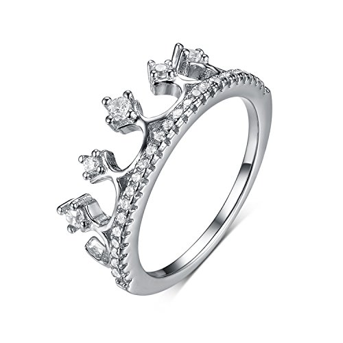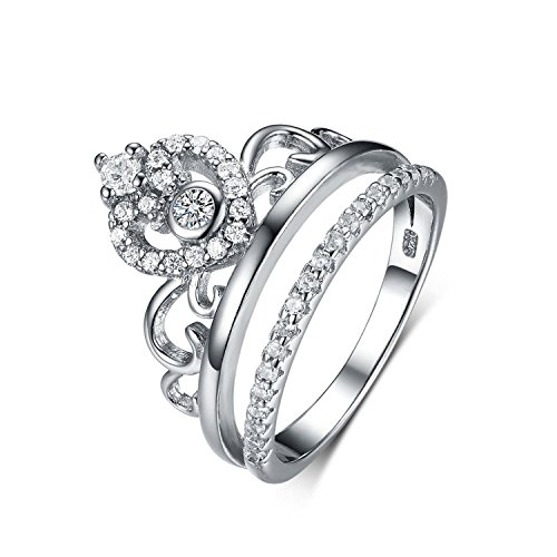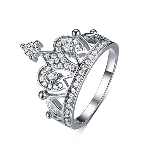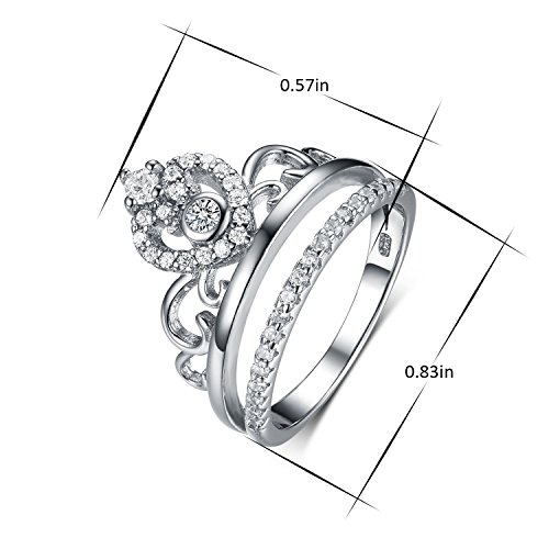 Princess Queen Crown Tiara Rings-925 Sterling Silver Cubic Zirconia White Gold Crown Rings for Women Product highlights: 925 Sterling Silver