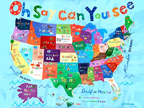 Oh say can you see, by the dawn's early light. We're proud to be Americans with this patriotic map of the US of A.