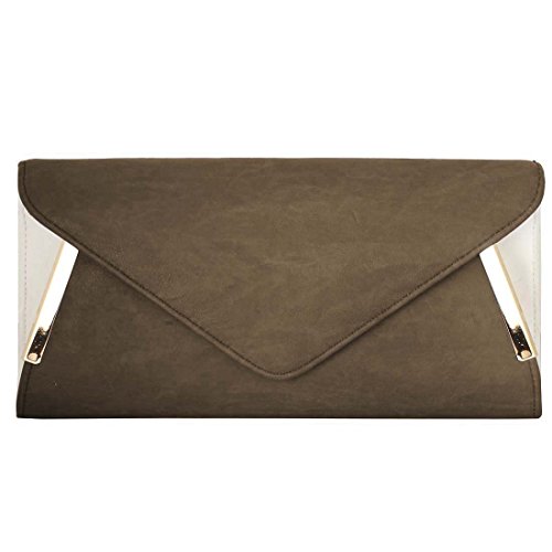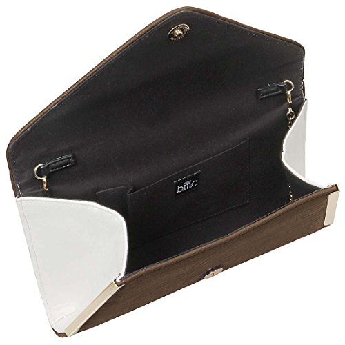 -. Brand : b.m.c -. ClothingSize : Large -. Department : womens -. Feature : TURN HEADS with these GORGEOUS two-tone, alloy metal accented fashion clutches / COMPACT, YET SPACIOUS this bag has the following dimensions 11.1 in (L) X 1.7 in (W) X 5.5 in (H) / FLAWLESS INTERIOR - main compartment has soft lining with 1 open side pocket and a b.m.c logo patch / VERSATILE DESIGN - add or remove the shoulder chain for a 21 inch drop / OTHER DETAILS - Closure: Magnetic Snap Button. Max Opening: 5 inches. -. Label : Bundle Monster -. Manufacturer : Bundle Monster -. NumberOfItems : 1 -. ProductGroup : Shoes -. ProductTypeName : HANDBAG -. Publisher : Bundle Monster -. Size : Large -. Studio : Bundle Monster -. Title : BMC Womens PU Leather Envelope Flap Metal White Accent Fashion Clutch Handbag