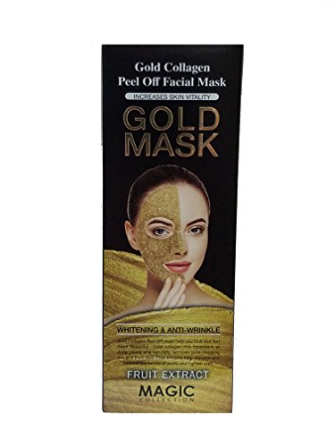 Gold collagen Peel Off mask helps you look and feel more beautiful. Gold collagen treatment does deep cleansing and naturally removes pore-clogging dirt from skin. Fruit extracts help regulate and balance the excess oil while at the same time tighten pores. INDICATIONS: Product Storage: Store the product in cool dark place out of direct sunlight and UV rays, oxygen, heat, and moisture. Bacteria from fingers can cause contamination. LEGAL DISCLAIMER: Possible skin sensitivity. Keep out of reach of children. If you are pregnant, nursing, or under a doctor's care, consult your physician. Avoid contact with eyes, inner ears, and sensitive areas.Feature