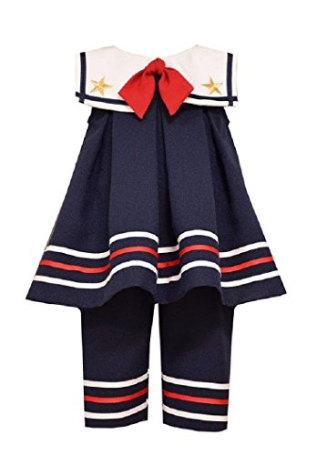 -. Title : Bonnie Jean Toddler Girls Square Collar Nautical Playwear Set, Navy, 2T
