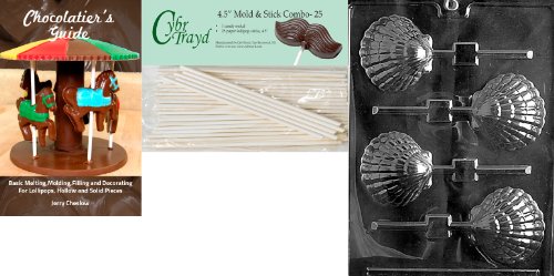 Cybrtrayd 'Shell Lolly Like N003' Nautical Chocolate Candy Mold with 25 4.5-Inch Lollipop Sticks and Chocolatier's Guide
