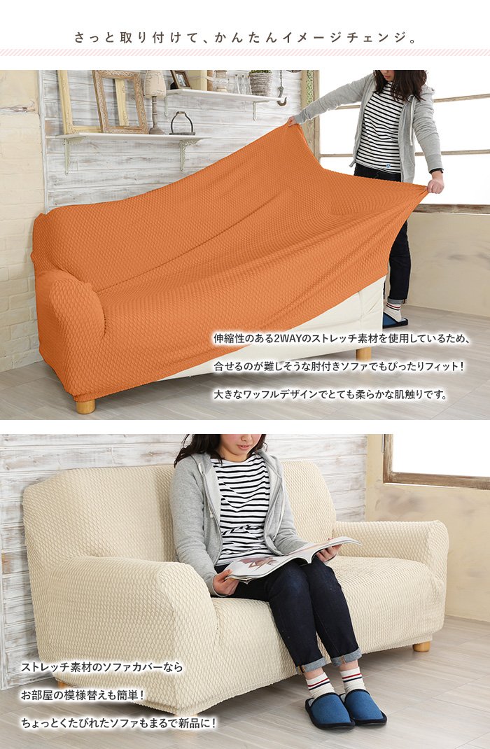 Sofa cover using stretchy 2WAY stretch material.