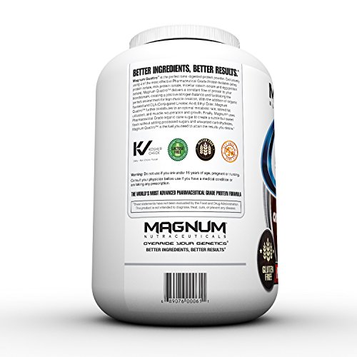 -. Binding : Health and Beauty -. Brand : Magnum Nutraceuticals -. Feature : A HIGH-END PROTEIN SUPPLEMENT - Pharmaceutical Grade isolate protein with 4 different sources of isolate for timed digestion / CONTAINS SUPERFOOD OMEGA'S - It has added CLA and Flaxseed for essential fatty acids and protein assimilation to help boost immune system and bone health! / CUT YOUR RECOVERY TIME IN HALF AND TRAIN BIG - Build denser and leaner muscle while speeding up recovery post-workouts. / CONTAINS 30 GRAMS OF EASY TO MIX GLUTEN FREE, GREAT TASTING PROTEIN - INCLUDING 3 EXCLUSIVE FLAVORS (2lb size only) - Half Baked Cookies N' Creme, Chocolate Peanut Butter Addiction and Pure & Simple / METABOLIC OPTIMIZER - A high-quality protein supplement that prevents gas or bloating and supports optimal digestion while increasing your metabolism to optimize fat-burning and decrease appetite -. IsAdultProduct : 0 -. Label : Magnum Nutraceuticals -. Manufacturer : Magnum Nutraceuticals -. MPN : 68907600061 -. PackageQuantity : 1 -. PartNumber : 68907600061 -. ProductGroup : Health and Beauty -. ProductTypeName : HEALTH_PERSONAL_CARE -. Publisher : Magnum Nutraceuticals -. Studio : Magnum Nutraceuticals -. Title : Magnum Quattro Isolate Protein Powder - Chocolate Love (4lb - 57 Servings)