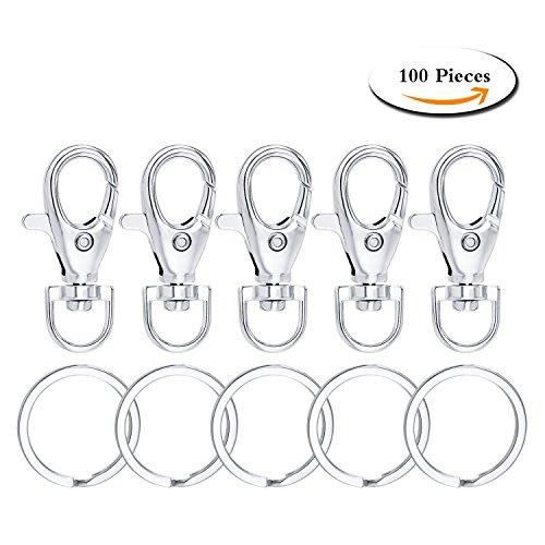 100 Pcs Metal Swivel Clasps Lanyard Snap Hook Lobster Claw Clasp Jewelry Findings with Key Chain Rings
