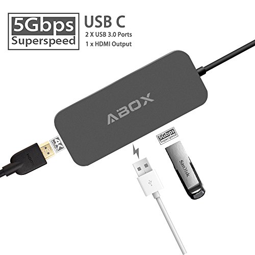 Globmall USB-C to 2-Port USB 3.0 Hub with HDMI Output, Abox Type-C Aluminum Portable Adapter for MacBook Pro and other Type-C Devices