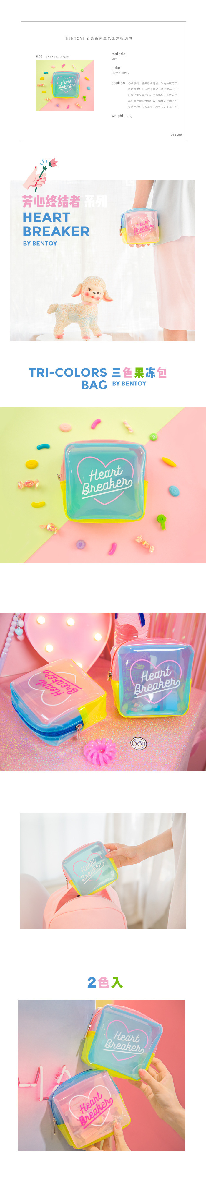 Milkjoyハートターミネーター化粧バッグ透明大容量ゼリーパックガールイン収納バッグ