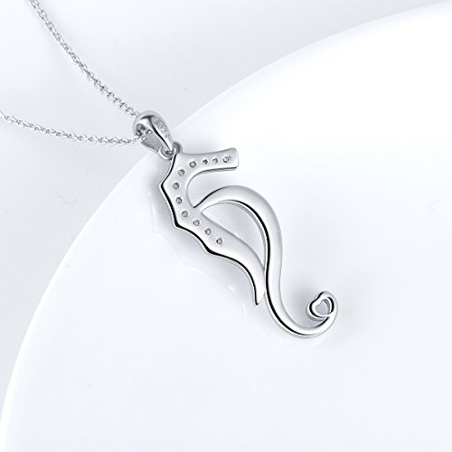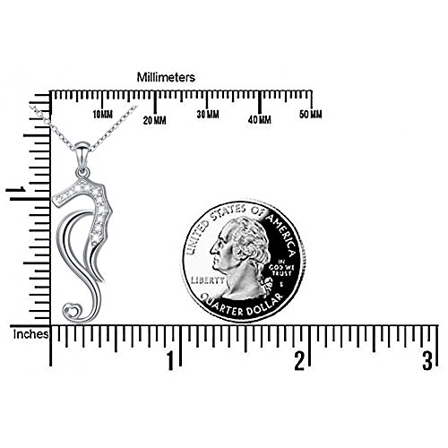 Sterling Silver Hippocampus with Heart Shaped Tail Charm Necklace. Perfect as Mothers Day, Valentines Day, Thanksgiving Day, Christmas, Birthday, Wedding Engagement Gifts for Women