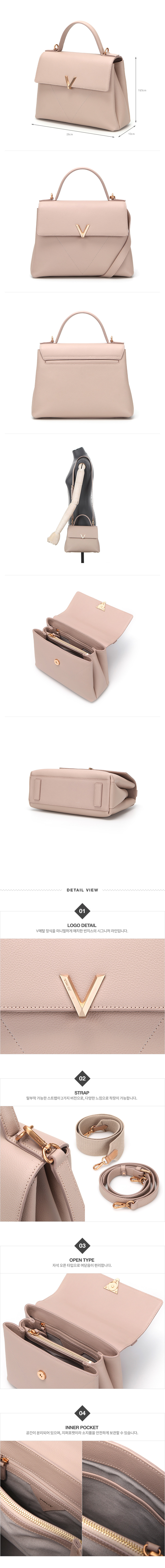 고급스러운 잔오플 가죽과 V메탈 장식을 미니컬하게 매치한 빈치스의 시그니처 라인.