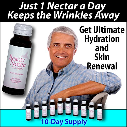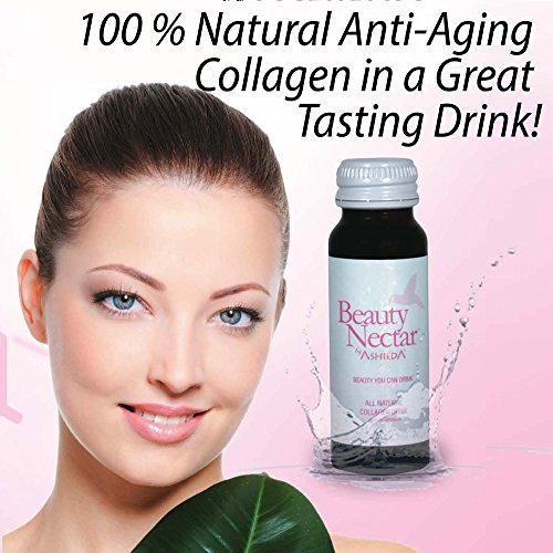 Ashieda's Collagen Beauty Nectar Drink is an all-in-one anti-aging, skin hydration and skin renewal drink. Clinically-studied and doctor-recommended, Beauty Nectar is proven to increase collagen production, reduce wrinkles and fine lines and improve overall skin tone to give you glowing, younger-looking skin. Drinking one 2-oz bottle daily adds enough collagen protein to give your skin back the strength and elasticity of youth. One box contains 10 bottles to start you on your way to newly nourished and hydrated skin. This rapidly absorbed great-tasting collagen drink is a 100% natural, without artificial sugars, chemicals or additives, and with the highest grade of hydrolyzed collagen. As we age, our bodies produce less collagen which results in problems such as dry, sagging skin, fine lines and wrinkles, redness or blotchy complexion, brittle hair, ragged nails, loss of muscle tone, etc. These are many of the physical traits we associate with the aging process, and they all begin with reduced collagen production. Numerous medical studies have shown that it is possible to supplement your body's collagen production with a highly absorbable collagen drink such as Beauty Nectar. With all-natural added super fruits and vitamins, the anti-aging effect of our high quality hydrolyzed collagen will be heightened. Order your first supply of Beauty Nectar today and experience more vibrant looking skin in just a few weeks.Feature