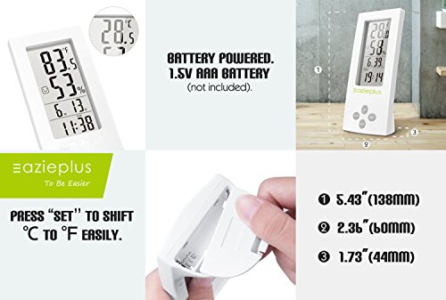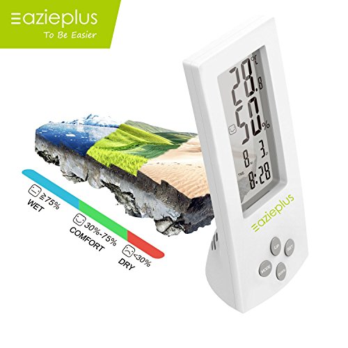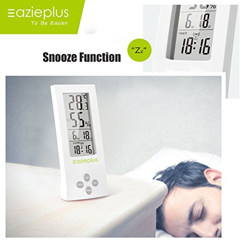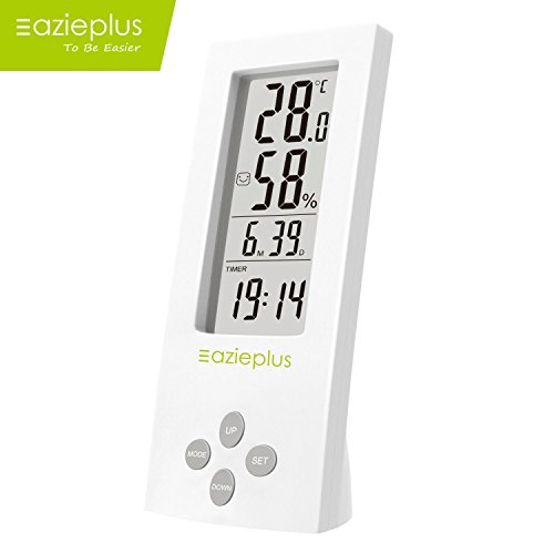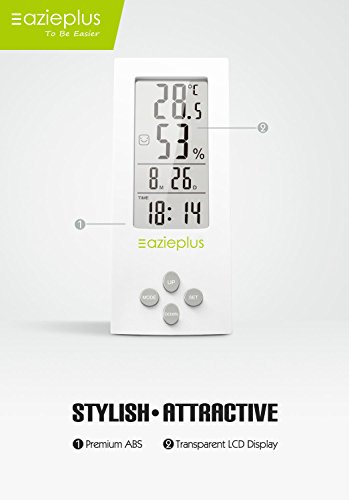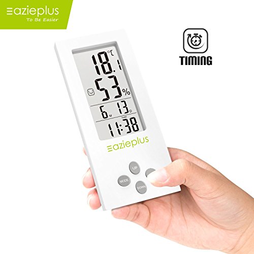 Eazieplus Digital Hygrometer Indoor Thermometer Humidity Gauge with LCD screen and All-in-one High Precision Digital Instant Read Hygro-thermometer Timer, Temperature and Humidity Meter, White
