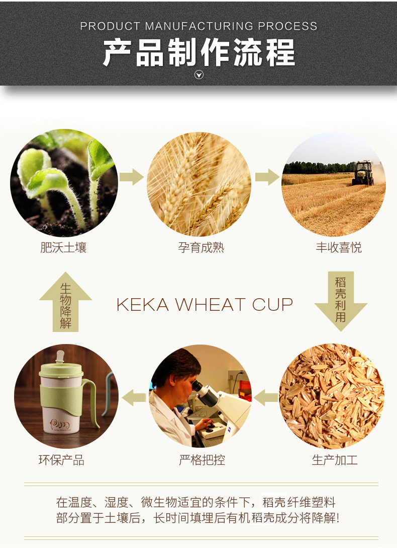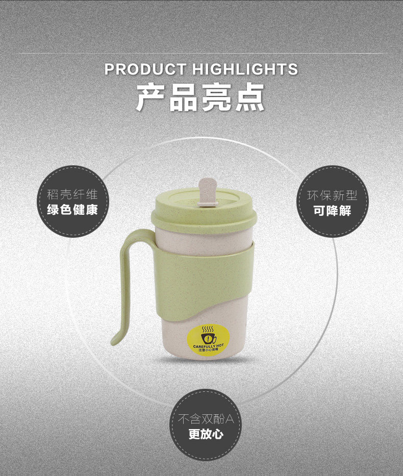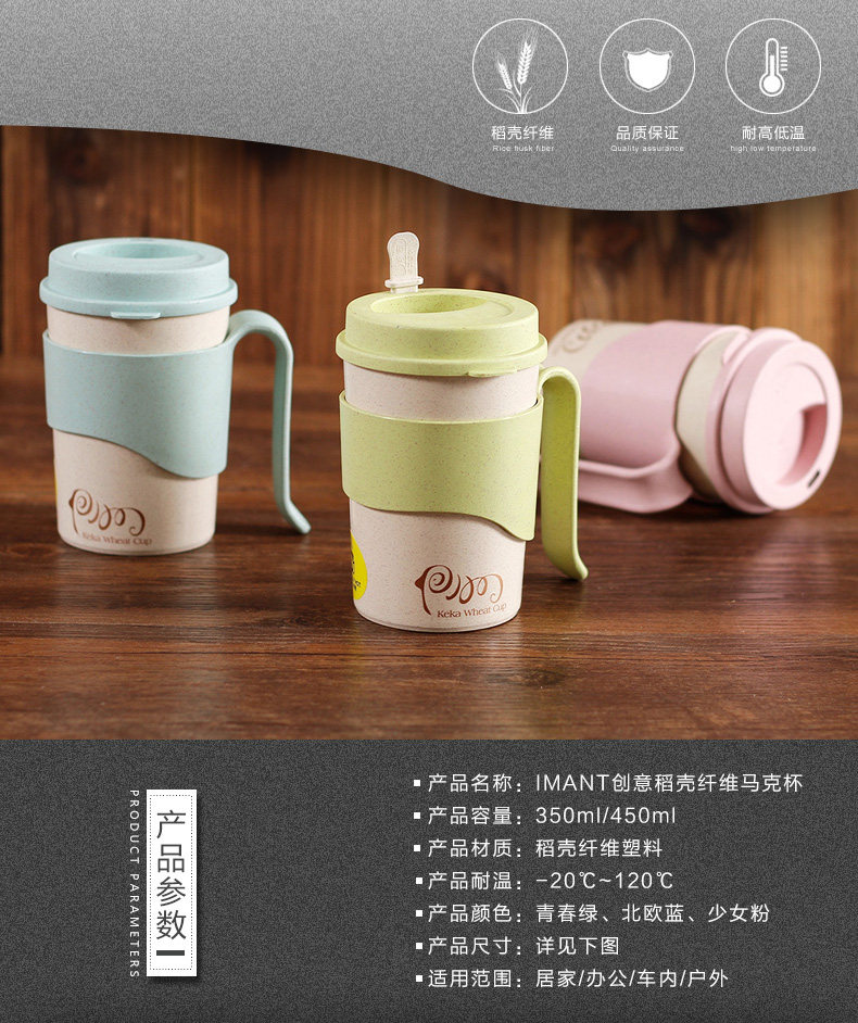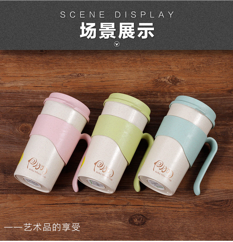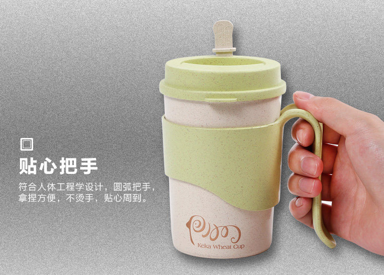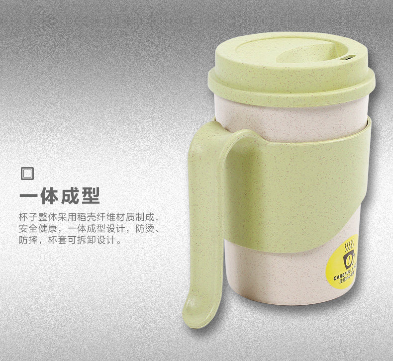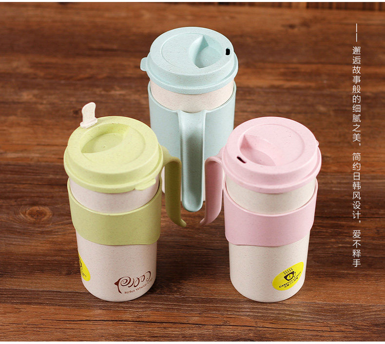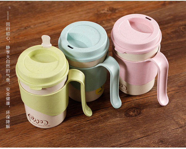 小麦纤维创意水杯子办公喝水杯 带盖有把手家用杯马克杯