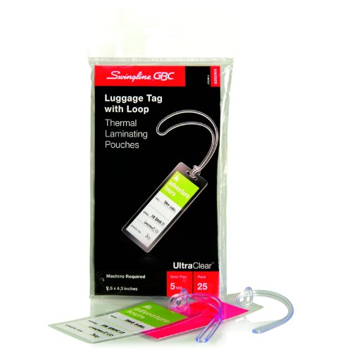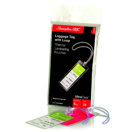 Swingline GBC UltraClear Thermal Laminating Pouches, Luggage Tag With Loops Size, 5 Mil, 25 Pack (3202005)