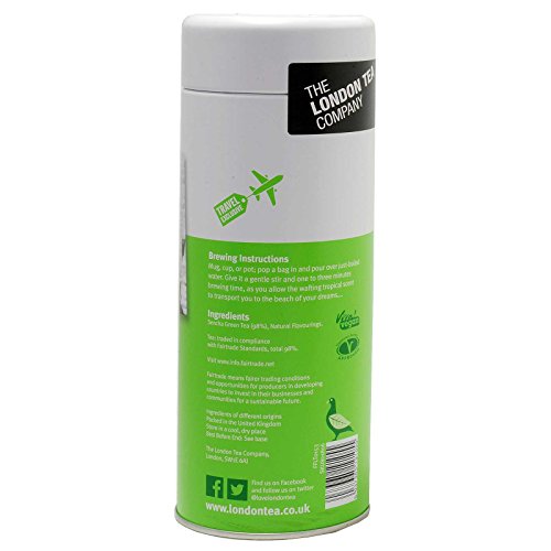 -. Binding : Misc. -. Brand : The London Tea Company -. Feature : Our Fairtrade Sencha is a steamed pure green tea, renowned for its clean fresh flavour. To this we have added the delicious tropical flavours of pineapple and mango. / 12 Tea Bags. / We only supply UK products. Please Note that British format of the date is day/month/year. / Supplied in an attractive reusable container perfect for keeping your tea fresh. -. PackageQuantity : 1 -. ProductGroup : Grocery -. ProductTypeName : GROCERY -. Title : British London Tea Company - Tropical Green Tea 12 Tea Bags - With Reusable Tin