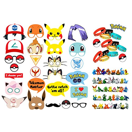 -. Title : Pokemon Party Supplies Bundle Favors Pack-24 Action Figures,12 Bracelets and 26 Photo Booth Props Suitable for Birthday Theme Party