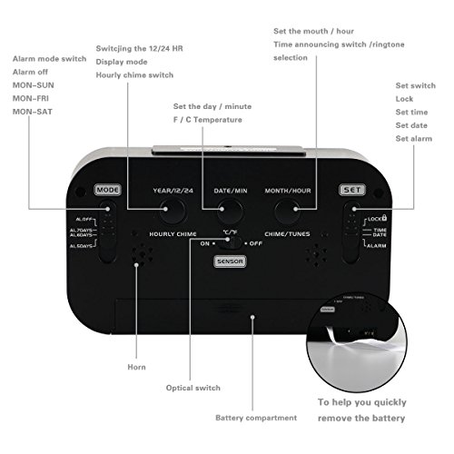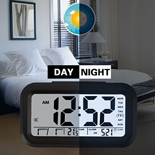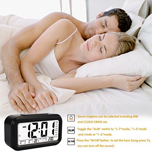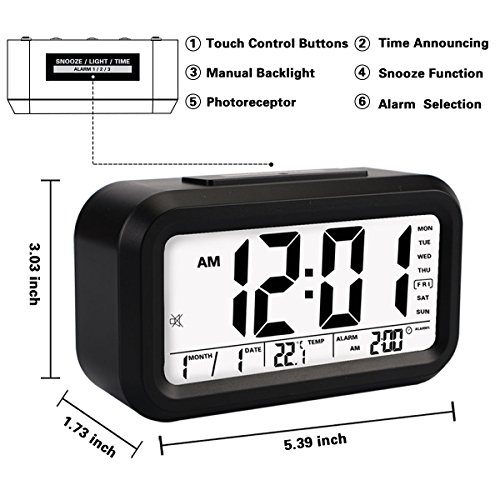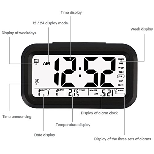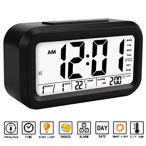 Alarm Clock, Aitey Talking Alarm Clock with Large Digital Display, Optional Weekday Alarm, Snooze, 3 Alarms, 7 Rings and Low Light Sensor Technology ( Black )