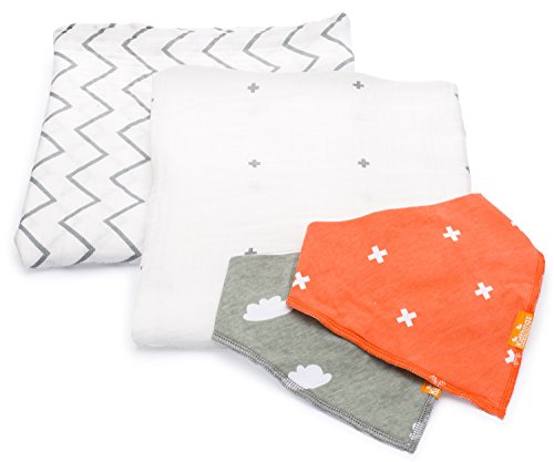 SET ALSO INCLUDES BONUS TWO BABY BIBS, BANDANA STYLE, SO YOU CAN USE AN AWESOME FASHION ACCESSORY TO PROTECT your beautiful baby’s skin and outfits from drool and spit up! Unisex patterns. One bib is sassy vibrant orange, the other is calm and pensive grey – you decide baby’s mood! Baby will look even more adorable. Snaps allow adjustable sizes – no Velcro to scratch baby or lose stickiness over time. Super absorbent so baby stays dry. Fleece backing super soft for baby comfort.