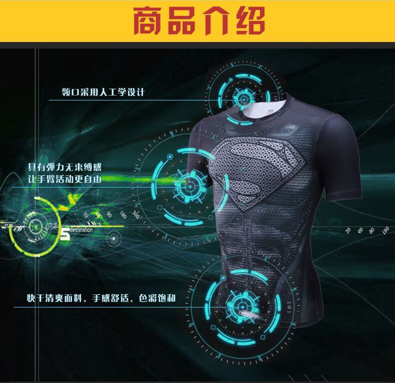 超人英雄系列紧身弹力衣大黄锋吸湿排汗速干短袖PRO速干衣T恤