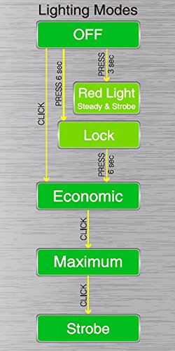 - Feature : Uses sophisticated optical lens for enhanced beam with 5 light modes (white: economic, high-brightness, strobe; red: constant, strobe) / White LED with 105-lumen light output and 90-meter beam length provides 187 hours burn time in economy mode and 95 hours in brightest mode / Highest-quality Cree high-power XP-E LED for white spotlight; red LED provides strobe for safety signaling; 3 AAA batteries included / Adjustable headband, lamp illumination angle tilt, and lock mode to avoid accidental enabling and battery drain when stored in pack or pocket / Compact, lightweight design for use in outdoor activities with IPX4 rating for water resistance