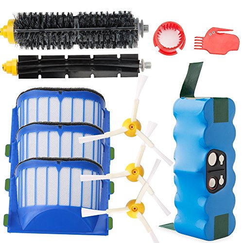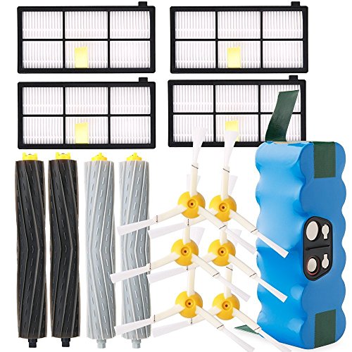 Package Including: 1*4.0Ah iRobot roomba replacement Battery, 1*bristle brush, 1*flexible brush, 3*filters, 3*side Brush, 2*cleaning tools.