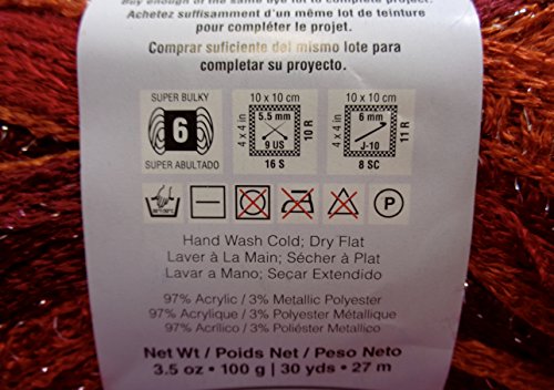 Price is for 3 skeins of Red Heart Boutique Sashay Yarn Salsa E782-1949 (UPC 073650816246) for a total of 90 yards/10.5oz (82 meters/300gr) knitting yarn