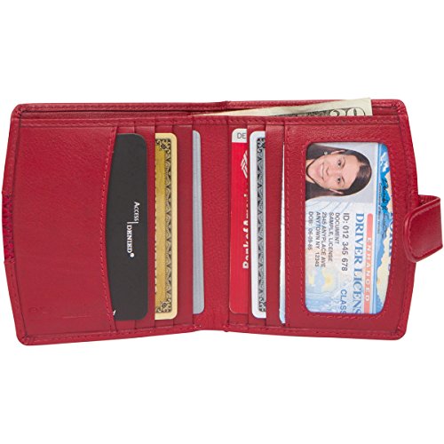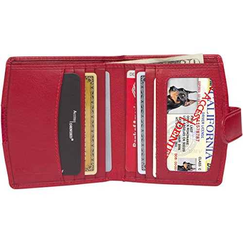Access Denied Womens Slim Leather RFID Blocking Bifold Snap Wallet
